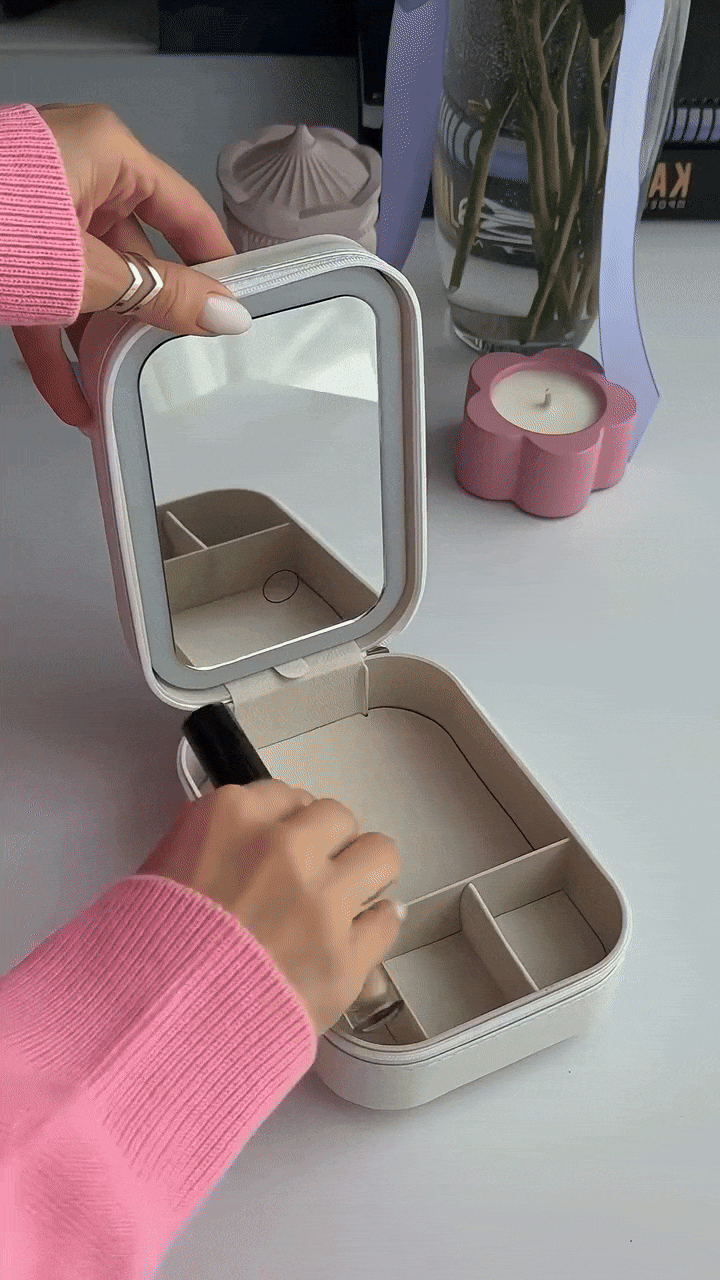 Perfect for travel! Fits all my essentials and the light settings are such a bonus — I don’t need a separate mirror anymore.